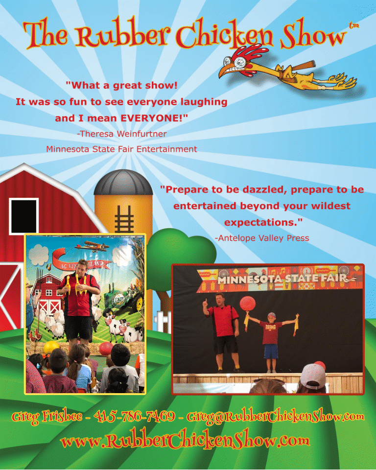 The Rubber Chicken Show is perfect for all ages, from pre-k to 401-K.